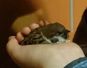 昨晩、家族が帰り道、スズメの幼鳥を保護しました。