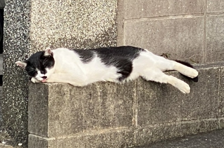 舌をペロッとだして爆睡中… 近所の老猫