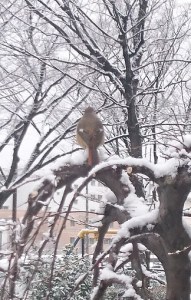 おばあさんの足跡はあとかたもなく雪に覆われていました。