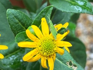 サンビタリアの花にショウリョウバッタの赤ちゃん