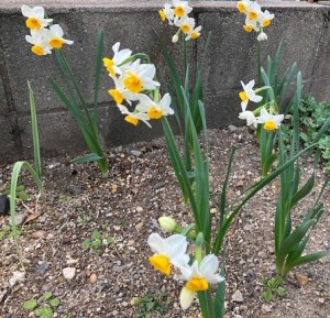 あれから3か月、ほらほら、スイセンが今ちょうど花ざかりです。